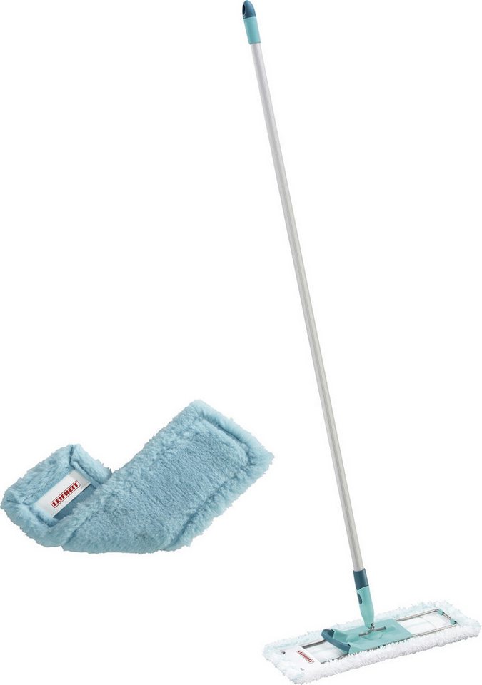 Dieser Bodenwischer bietet eine rückenschonende Handhabung dank des langen Aluminiumstiels und ermöglicht durch die extra breite Wischfläche ein schnelles Reinigen großer Flächen. Das Micro Duo-Wischpad sorgt dafür, dass Schmutz gründlich entfernt wird, während der Fußklick-Mechanismus die Bedienung vereinfacht. Ein flexibles Gelenk erlaubt es, auch schwer erreichbare Ecken und Bereiche unter Möbeln mühelos zu reinigen.