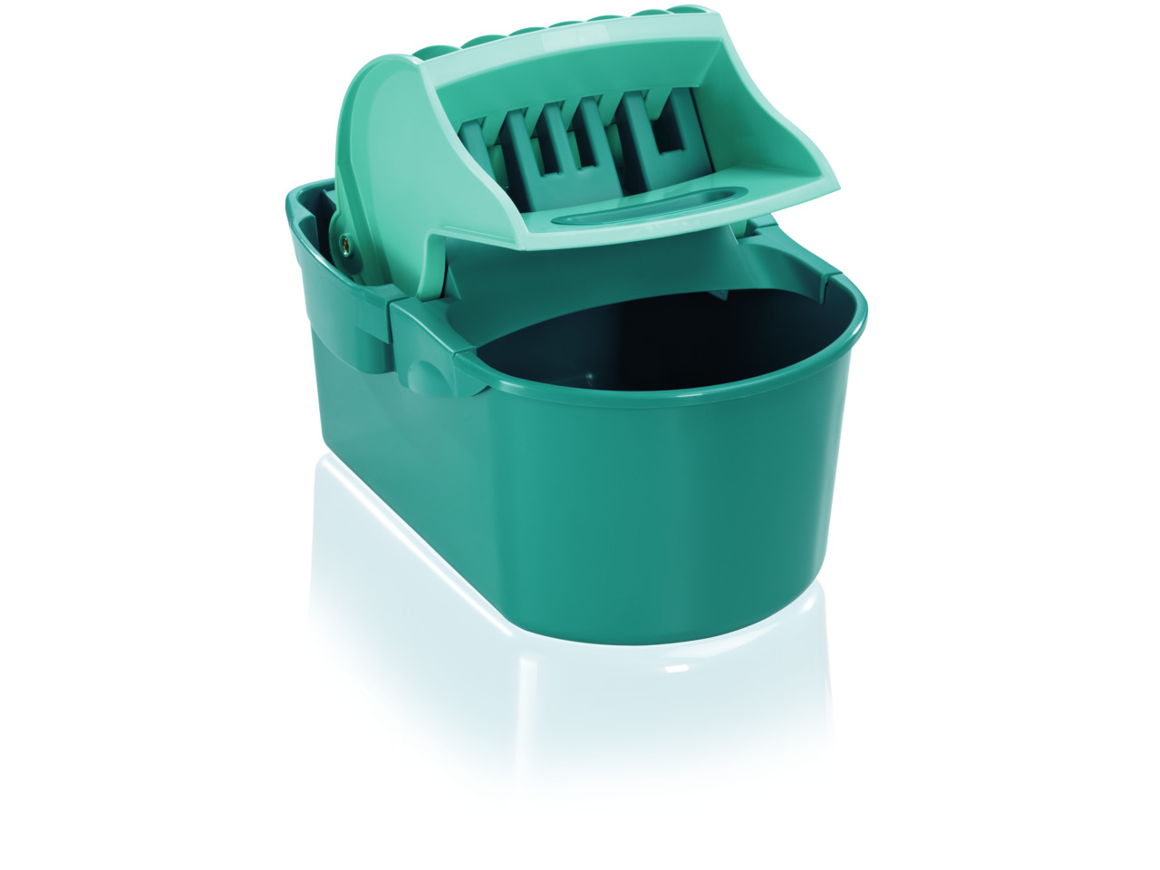 Bietet rückenschonendes Auspressen ohne nasse Hände und spart Platz.