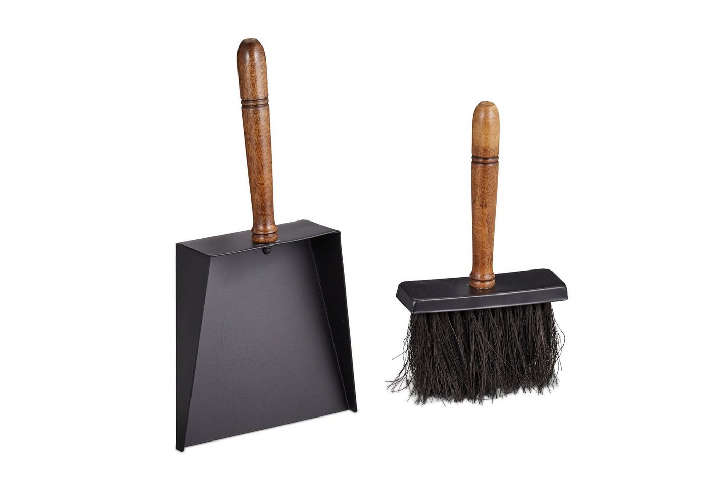 relaxdays Kehrgarnitur Kaminbesen und AscheschaufelSchwarz-Braun, mit robustem Juteborsten Handfeger