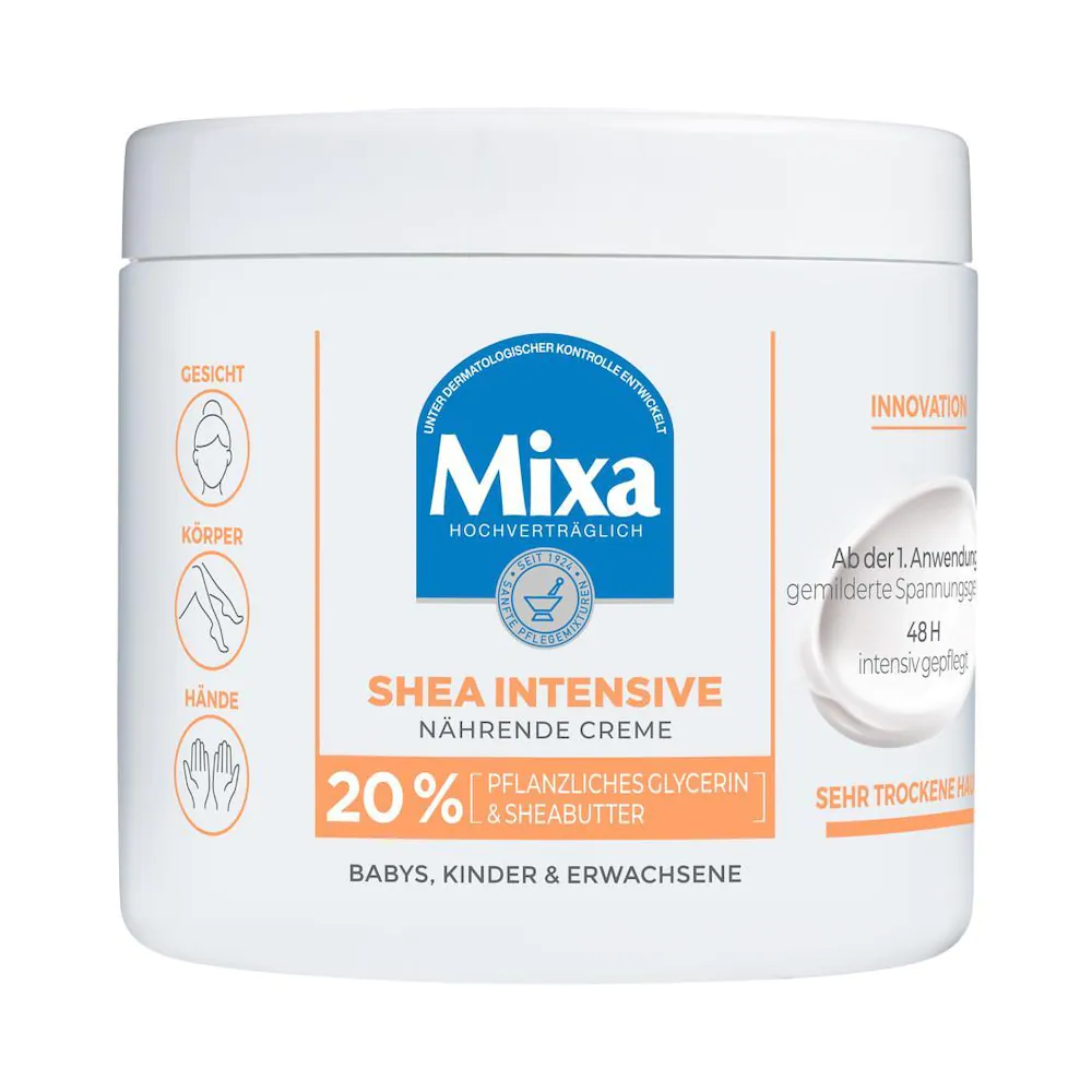 Die Mixa Shea Intensive Nährende Creme Bodylotion 400 ml erhält überwiegend positive Bewertungen von Kunden. Die Creme wird für ihre angenehme Textur, den Duft und die pflegende Wirkung gelobt. Einige Kunden haben jedoch Bedenken hinsichtlich der Verpackung geäußert.