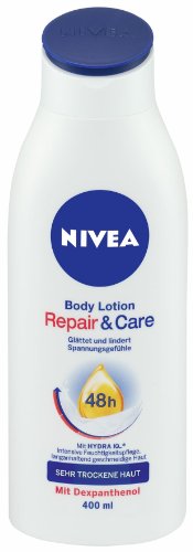 Die Nivea Body Repair Care Bodylotion bietet eine schnelle Wirkung bei trockener Haut und zieht angenehm ein. Durch ihre sparsame Anwendung ist sie besonders effektiv und spendet der Haut langanhaltende Feuchtigkeit für mehrere Tage. Die Lotion wirkt auch gegen Hautirritationen und Rötungen, wodurch die Haut gepflegt und geschützt wird.