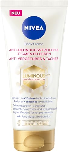 Die NIVEA LUMINOUS630 Body Creme soll Dehnungsstreifen und Pigmentflecken reduzieren sowie den Hautton ausgleichen. Die Creme hat eine leichte Textur und spendet 48 Stunden Feuchtigkeit. Während einige Anwender positive Ergebnisse berichten, gibt es auch viele, die keine Veränderungen feststellen konnten.