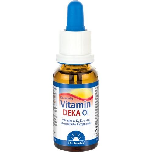 Das Vitamin Deka Öl von Dr. Jacob's Tropfen in 20 ml Größe bietet eine wertvolle Kombination fettlöslicher Vitamine, darunter A, D, E und K. Diese Vitamine stärken das Immunsystem und unterstützen die Gesundheit von Haut, Muskeln und Knochen. Dank seiner Zusammensetzung ist es ideal für den täglichen Gebrauch geeignet.