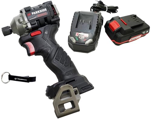 HEADNMORE® Bundle - PARKSIDE PERFORMANCE® 20V - 1/4" Akku Drehschlagschrauber PDSSAP 20 + Schlüsselanhänger (1x2Ah Akku) - Leistungsstarker Drehschlagschrauber mit bürstenlosem Motor, 4 Drehmomentstufen, Akku und Ladegerät, in Transportkoffer