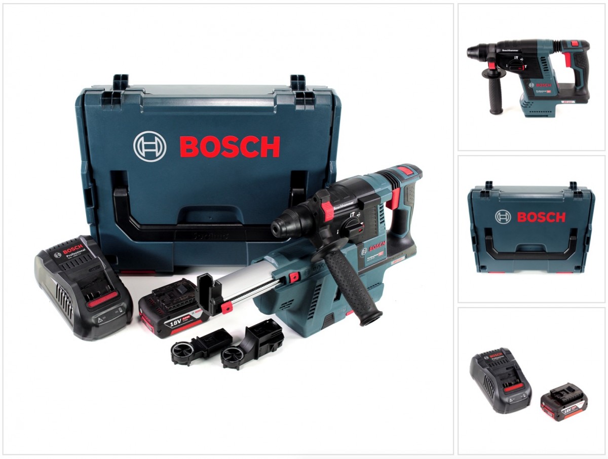Bosch Professional GBH 18 V-26 Akku Bohrhammer SDS-Plus in L-Boxx mit GDE 18 V-16 Staubabsaugung + 1x GBA 5 Ah Akku + GAL 1880 CV Ladegerät