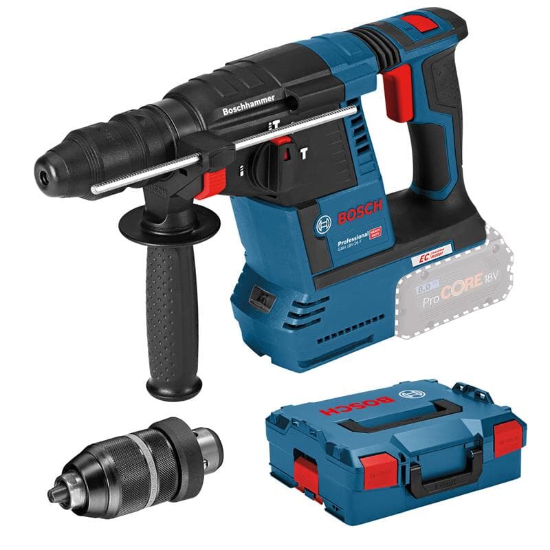Bohr-Ø Beton, Hammerbohrer 4 – 26 mm, Opt. Anwendungsbereich Beton, Hammerbohrer 8 – 16 mm, Bohr-Ø in Beton mit Hohlbohrkronen 16 – 68 mm, Max. Bohr-Ø Mauerwerk, Bohrkronen 68 mm