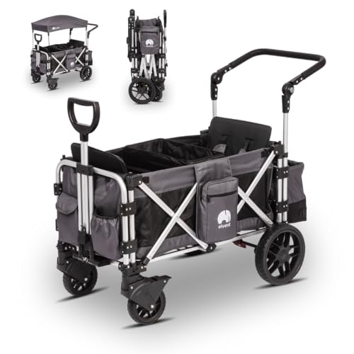 elvent FamilyStar 2 Kinderwagen 2-Sitzer – leicht faltbar, bis 80 kg, Sonnendach, Sitzpolster, 5-Punkte-Gurt, Fußbremse
