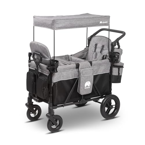 elvent ComfortPlus 2 Kinderwagen 2-Sitzer – faltbarbis 80 kg, Sonnendach, Sitzpolster, 5-Punkte-Gurt, Fußbremse