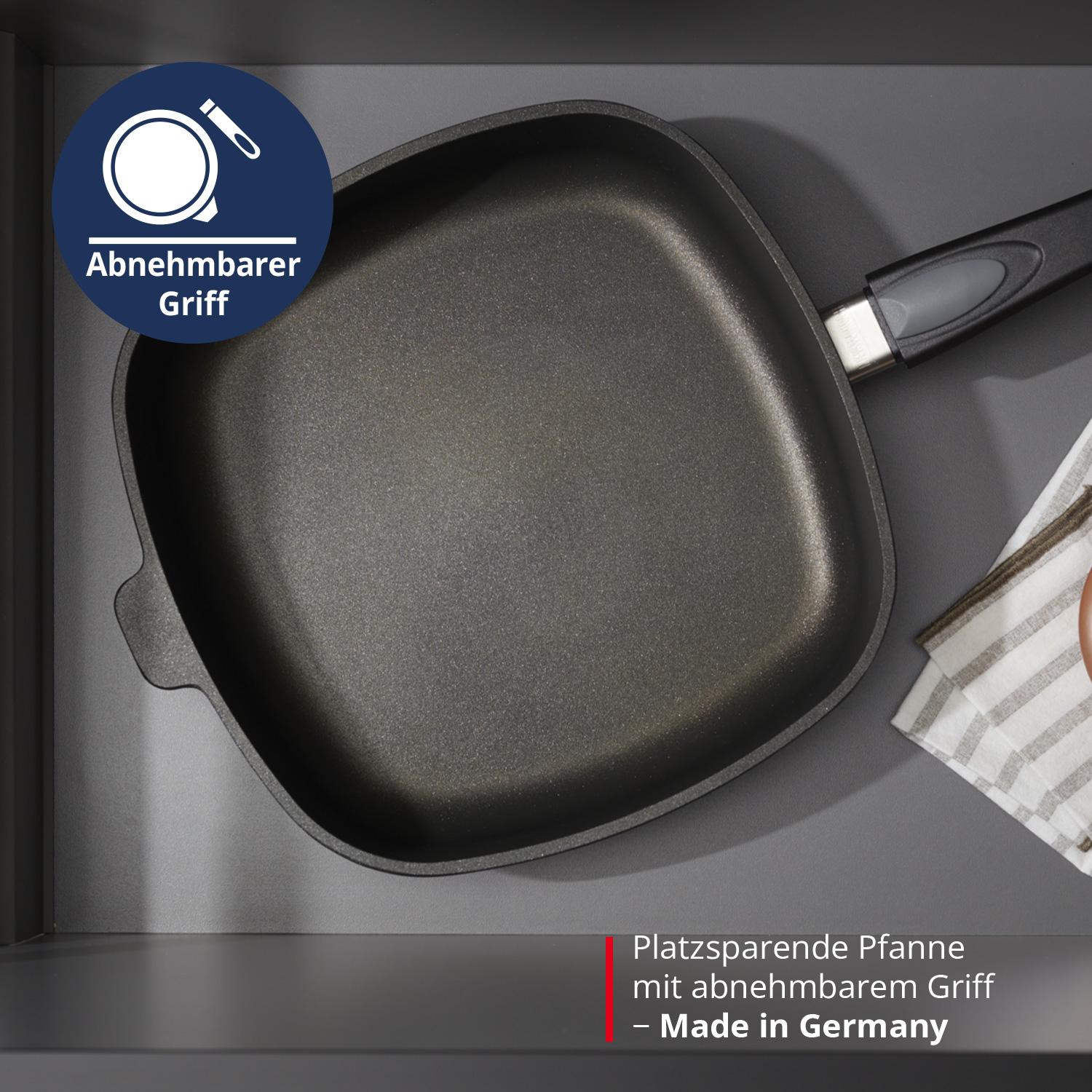 | Name | MEISTERKOCH Bratpfanne 28x28 cm, Induktion, Antihaft, abnehmbarer Griff | 6,5 cm hoher Rand, 4,3l Volumen | Made in Germany | 4-lagige Titanium-Versiegelung, spülmaschinengeeignet |