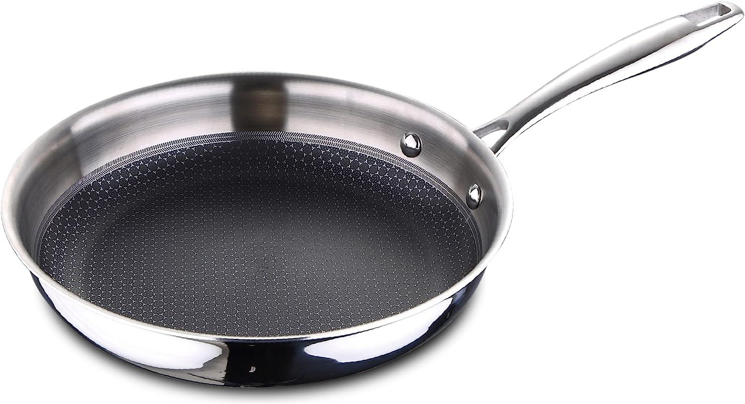 Die Pfanne Masterpro BGMP-1631 Ø 24 cm aus hochwertigem Edelstahl ist die ideale Ergänzung für Ihre Küche. Mit einem Durchmesser von 24 cm und einer eleganten Silberfarbe bietet sie nicht nur ansprechendes Design, sondern auch hervorragende Kochergebnisse. Die Pfanne ist für alle Herdarten geeignet, einschließlich Induktion, und überzeugt durch ihre einfache Reinigung sowie gleichmäßige Hitzeverteilung. **Highlights** - Hochwertiges Edelstahlmaterial - Geeignet für alle Küchentypen - Leicht zu reinigen - Durchmesser von 24 cm - Gleichmäßige Hitzeverteilung **Produkteigenschaften** - Material: Edelstahl - Durchmesser: Ø 24 cm - Farbe: Silberfarben - Form: Rund - Höhe: 45 mm - Antihaftbeschichtung: Pallatium mit Wabenstruktur - Geeignet für Induktions-, Gas-, Halogen-, Glaskeramik- und Elektroherde