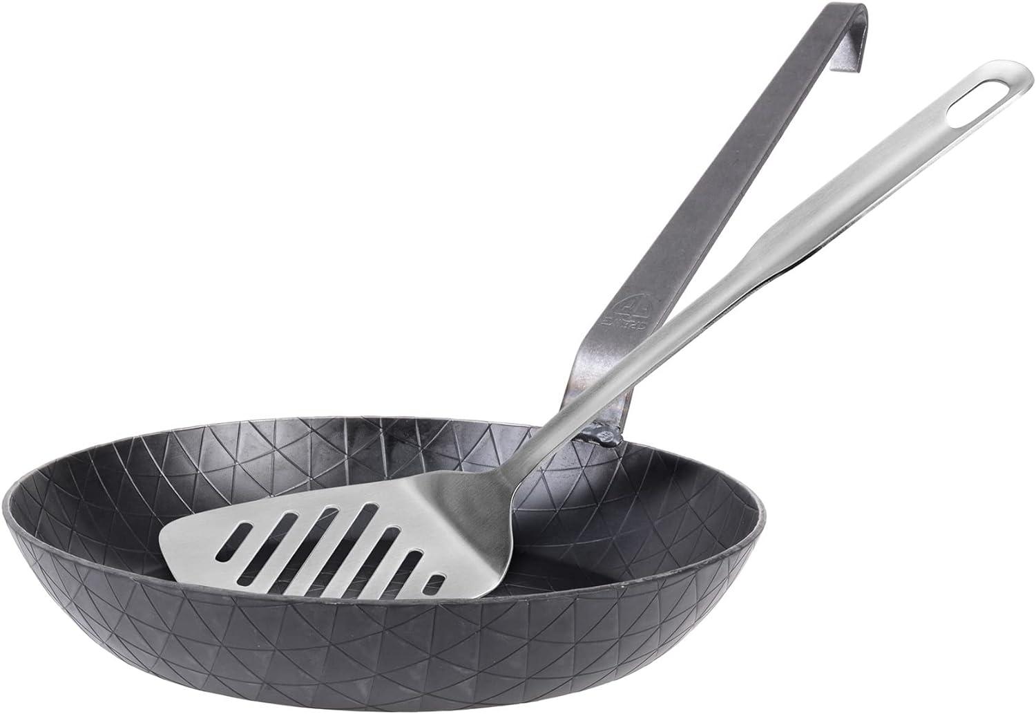 Die Bratpfanne zeichnet sich durch ihre robuste Bauweise aus schmiedeeisernem Material aus, das nicht nur ästhetisch ansprechend ist, sondern auch für hohe Hitzebeständigkeit sorgt. Mit einer Materialstärke von ca. 2,7 mm und einem Gewicht von ca. 1360 g bietet sie eine solide Haptik. Der angeschweißte Hakenstiel ermöglicht eine einfache Handhabung und gibt der Pfanne eine ansprechende Form, die sowohl in der heimischen Küche als auch im professionellen Einsatz überzeugt.