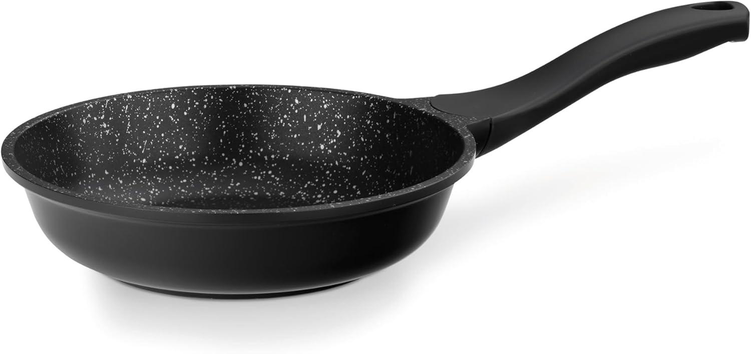 Die Kela Bratpfanne 20 cm Stella Nova bietet Ihnen die Möglichkeit, gesunde und schmackhafte Gerichte einfach zuzubereiten. Mit ihrer 3-fachen Antihaftbeschichtung ist sie ideal für empfindliche Speisen wie Gemüse, Fisch und Mehlspeisen. Der hitzebeständige Soft-Touch-Griff sorgt für eine bequeme Handhabung. Dank des Energiesparbodens aus Edelstahl und des Oil Control Systems wird eine gleichmäßige Ölverteilung gewährleistet. Die Pfanne ist backofenfest bis 180 Grad und eignet sich für alle Herdarten. **Highlights** - 3-fache Antihaftbeschichtung für gesundes Kochen - Oil Control System für gleichmäßige Ölverteilung - Energiesparboden aus Edelstahl für kurze Aufheizdauer - Backofenfest bis 180 Grad - 5 Jahre Garantie – German Design Award Winner 2020 **Produkteigenschaften** - Material: Aluminium - Maße (H x Ø): 5x20 cm - Geeignet für Gas, Glaskeramik, Halogen, E- und Induktionsherd - Einfache Reinigung mit heißem Wasser und weichem Tuch **Lieferumfang** - 1 Kela Bratpfanne Stella Nova, 12215 - Ausschluss von Zubehör und weiteren Pfannen