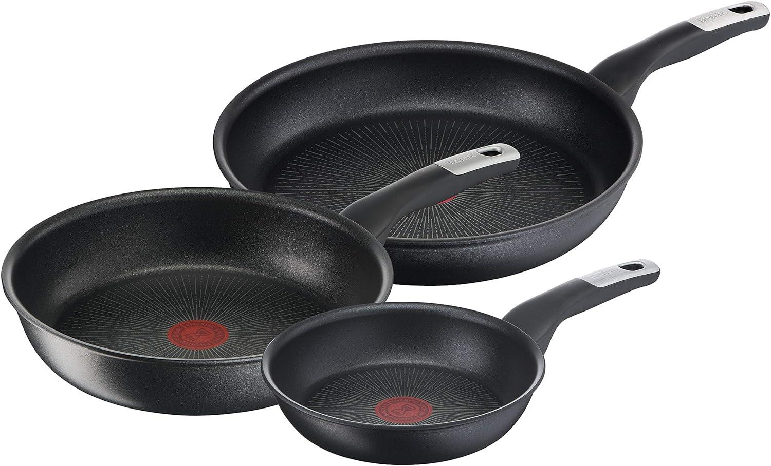 | Name | Tefal G25591 Unlimited On 3-teiliges Pfannen-Set | Pfannen 24/28 cm und Wokpfanne 28 cm | kratzfeste Antihaftversiegelung | Thermo-Signal | alle Herdarten + Induktion | einfaches Reinigen | Schwarz |