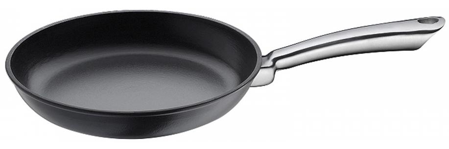 Die Küchenprofi Bratpfanne mit einem Durchmesser von 24 cm ist aus emailliertem Gusseisen gefertigt und eignet sich hervorragend zum Schmoren, Köcheln, Kochen, Braten und Frittieren. Sie nimmt die Hitze schnell auf und verteilt sie gleichmäßig. Die Pfanne ist für alle Herdarten, einschließlich Induktion, geeignet und backofenfest bis 250 °C. Das schlichte Design wurde in Zusammenarbeit mit Tassilo von Grolman entworfen. **Highlights** - Schnelles Aufnehmen und optimale Verteilung der Hitze - Energiesparend und aromaschonend - Für alle Herdarten inklusive Induktion geeignet - Backofenfest bis 250 °C - Schlichtes und durchdachtes Design **Produkteigenschaften** - Artikel-Nr.: 0403001024 - EAN: 4007371058896 - Länge: 43,5 cm - Höhe: 4,5 cm - Gewicht: 1,29 kg - Material: Gusseisen emailliert **Lieferumfang** - 1x Küchenprofi 24 cm Bratpfanne mit Edelstahlgriff in Schwarz (Art.-Nr. 0403001024)