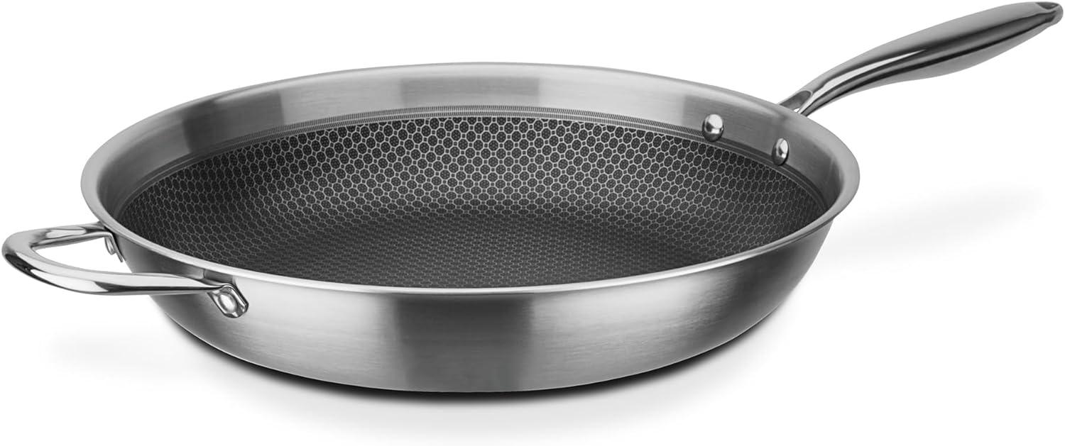 Die GSW 868549 Inoxxa Black Bratpfanne mit einem Durchmesser von 36 cm überzeugt durch ihre Edelstahl-Wabenstruktur, die eine ideale Fettverteilung ermöglicht. Sie ist vielseitig einsetzbar zum Schmoren, Dünsten und Braten. Dank der perfekten Wärmeleitung sparen Sie Energie, während der praktische Gegengriff für sicheres Tragen sorgt. Die langlebige Antihaftversiegelung erleichtert die Reinigung und macht die Pfanne robust und kratzfest. Geeignet für alle Herdarten, einschließlich Induktion. **Highlights** - Vielseitig einsetzbar: Ideal zum Schmoren, Dünsten und Braten - Energiesparendes Kochen: Schnelle und effiziente Zubereitung - Sichere Handhabung: Praktischer Gegengriff für sicheres Tragen - Robuste Verarbeitung: Widerstandsfähig gegen Kratzer und Abnutzung - Universal einsetzbar: Geeignet für alle Herdarten inklusive Induktion **Produkteigenschaften** - Durchmesser: 36 cm - Material: Edelstahl 18/8, Aluminium, Edelstahl 18/2 - Antihaftversiegelung - Wabenstruktur für ideale Fettverteilung - Spülmaschinengeeignet - Backofenfest
