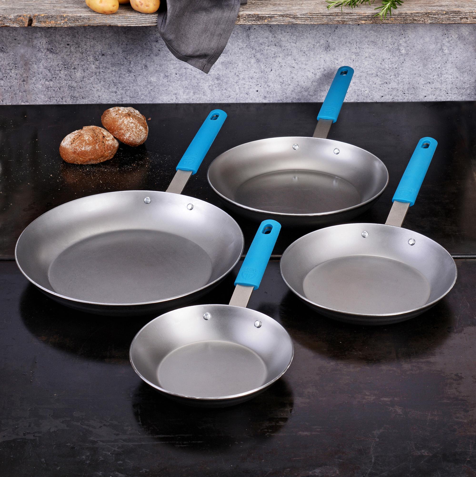 Die Wax Pro Eisenpfanne Ø 28 cm von GRÄWE überzeugt durch ihre hervorragenden Brateigenschaften und hohe Hitzebeständigkeit bis 400 °C. Sie ist für alle Kochfelder geeignet und bietet mit ihrem robusten Griff und dem Silikonschutz maximalen Komfort beim Kochen. Die Pfanne ist mit umweltfreundlichem Bienenwachs vor Rost geschützt und hat die idealen Abmessungen für ein besonderes Braterlebnis. **Highlights** - Beste Brateigenschaften - Äußerst hitzebeständig bis 400 °C - Geeignet für alle Kochfelder - Robuster Pfannengriff für sicheren Halt - Silikonschutz für maximalen Komfort **Produkteigenschaften** - Abmessungen: Ø ca. 28 cm, Ø Boden ca. 21 cm, Höhe ca. 4,8 cm, Grifflänge ca. 22,5 cm, Stärke ca. 3,2 mm - Gewicht: ca. 2,17 kg - Material: Schmiedeeisen - Wachsgeschützt mit umweltfreundlichem Bienenwachs **Lieferumfang** - 1 Wax Pro Eisenpfanne Ø 28 cm - 1 Luffa-Schwamm zur Entfernung der Schutzschicht