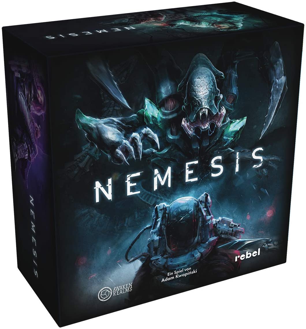 Nemesis ist ein semi-kooperatives Spiel, voller detaillierter Kunststofffiguren, die das Herz eines jeden Miniaturenfans höher schlagen lassen. Die Spieler müssen als Crew eines Raumschiffes überleben, das von feindlichen Organismen, den Xenos, befallen ist. Um zu gewinnen, muss ein Spieler eines seiner beiden Ziele erfüllen, die er zu Spielbeginn erhalten hat - und überleben! Dabei gibt es viele Gefahren zu überstehen: Schwärme von Xenos, den schlechten Zustand des Schiffes, die anderen Spie¬ler, die ihre eigenen Ziele verfolgen - und manchmal einfach nur grausames Schicksal. Dieses Spiel wurde so entwickelt und gestaltet, dass es voller atmosphärischer Momente ist, die ihr hoffentlich auch dann genießen könnt, wenn eure Pläne den Bach runtergehen und eure Charraktere ein schreckliches Schicksal erleiden.