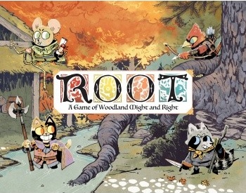 Root is a game of adventure and war where 2 to 4 players battle for control of a vast wilderness. The nefarious Marquise de Cat has seized the great woodland, intent on harvesting its riches. Under her rule, the many creatures of the forest have banded together. This Alliance will seek to strengthen its resources and subvert the rule of Cats. In this effort, the Alliance may enlist the help of the wandering Vagabonds who are able to move through the more dangerous woodland paths. Though some may sympathize with the Alliance?s hopes and dreams, these wanderers are old enough to remember the great birds of prey who once controlled the woods. Meanwhile, at the edge of the region, the proud, squabbling Eyrie have found a new commander who they hope will lead their faction to resume their ancient birthright. The stage is set for a contest that will decide the fate of the great woodland. It is up to the players to decide which group will ultimately take root. Root represents the next step in our development of asymmetric design. Like Vast: the Crystal Caverns, each player in Root has unique capabilities and a different victory condition. Now, with the aid of gorgeous, multi-use cards, a truly asymmetric design has never been more accessible. The Cats play a game of engine building and logistics while attempting to police the vast wilderness. By collecting Wood they are able to produce workshops, lumber mills, and barracks. They win by building new buildings and crafts. The Eyrie musters their hawks to take back the Woods. They must capture as much territory as possible and build roosts before they collapse back into squabbling. The Alliance hides in the shadows, recruiting forces and hatching conspiracies. They begin slowly and build towards a dramatic late game presence?but only if they can manage to keep the other players in check. Meanwhile, the Vagabond plays all sides of the conflict for their own gain, while hiding a mysterious quest. Explore the board, fight other factions, and work towards achieving your hidden goal. In Root, players drive the narrative, and the differences between each role create an unparalleled level of interaction and replayability. Leder Games invites you and your family to explore the fantastic world of Root!