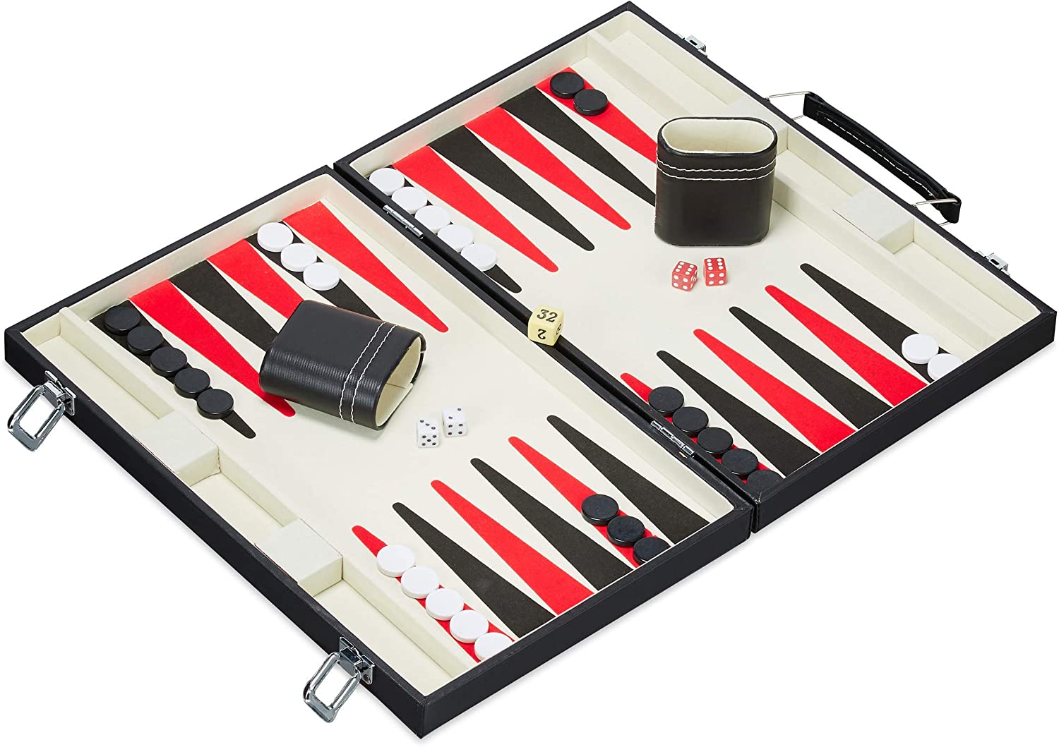 | Beschreibung | Relaxdays Backgammon Koffer, hochwertiges Set, inklusive komplettem Zubehör, Tavla Brettspiel, B x T 47 x 36 cm, schwarz |