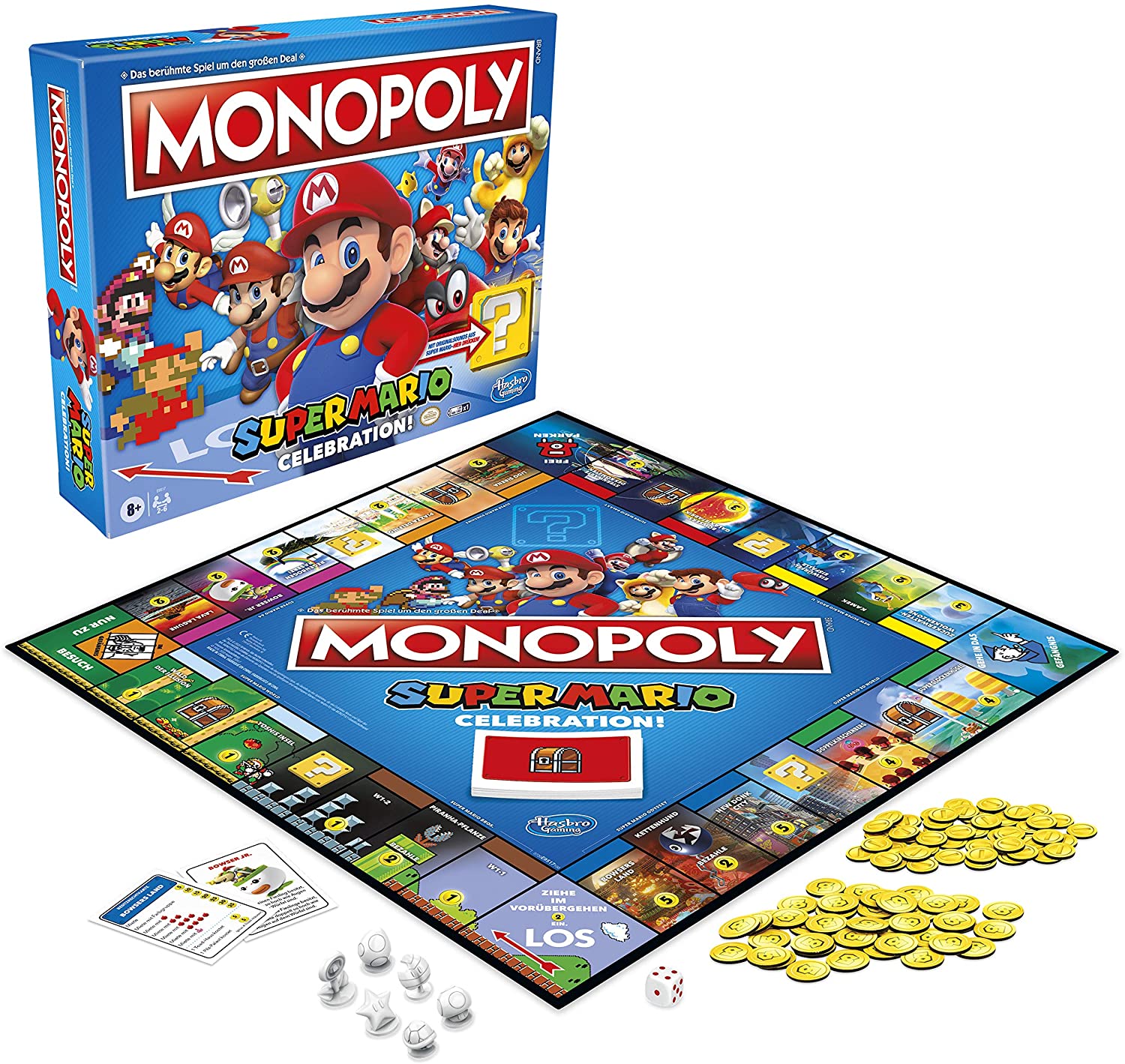 - Offiziell lizenziertes Super Mario Monopoly Brettspiel- Alter: ab 14 Jahren- Spieleranzahl: 2-6- Deutsche Version Monopoly Super Mario Celebration liefert actiongeladene Spannung gemischt mit Videospiel-Nostalgie. Die Spieler haben die Wahl zwischen 6 Spielfiguren, die für Super Mario Fans entworfen wurden und kaufen, verkaufen und tauschen im Spiel Orte aus den kultigen Super Mario Spielen. Bei Monopoly Super Mario Celebration treten all die beliebten Charaktere und Themen bis zurück ins Jahr 1985 auf, als das erste Super Mario Bros. veröffentlicht wurde. Mit einem Druck auf den enthaltenen ?-Block erklingen Soundeffekte aus den Videospielen, die das Glück der Spieler verändern können. Toad-Häuser und Pilz-Paläste von Prinzessin Peach ersetzen die gewohnten Häuser und Hotels. Ein tolles Geschenk zum Geburtstag oder zu Weihnachten für Gamer oder Super Mario-Fans ab 8 Jahren. Trademark and Copyright 2020 Nintendo. Die Titel Hasbro, Hasbro Gaming, Parker Brothers und Monopoly sowie die dazugehörigen Logos, die Gestaltung des Spielplans, die vier Eckfelder, Name und Figur des Mr. Monopoly sowie alle Elemente des Spielplans und die Spielfiguren sind eingetragene Marken von Hasbro für das Monopoly-Gesellschaftsspiel inklusive Spielausstattung.
