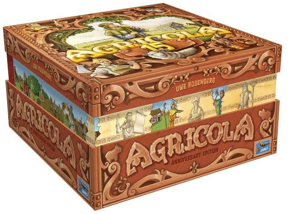 Die prall gefüllte Agricola 15 Jahre Jubiläumsbox enthält die überarbeitete Neuauflage des Grundspiels (2016), die Deck-Erweiterungen Artifex und Bubulcus sowie einige frühere Promodecks (T, X, L). Das durchdachte Inlay mit Kartensortierbox und variablen Aufbewahrungsfächern bietet Spielern genügend Platz, um alle Erweiterungen und Kartendecks, die es für Agricola gibt oder jemals gab, übersichtlich aufzubewahren. Außerdem finden Spieler in der Box die begehrten und seit Jahren vergriffenen, individuellen Hofpläne. Im Landwirtschaftsspiel Agricola von Erfolgsautor Uwe Rosenberg starten die Spieler mit zwei Familienmitgliedern in einem Holzhaus. Mit Hilfe von Holz und Schilf können sie ihr Haus ausbauen, dann ihre Familie vergrößern und so nach und nach zu Wohlstand gelangen. Es gewinnt, wer am Ende den größten Wohlstand zu verzeichnen hat.