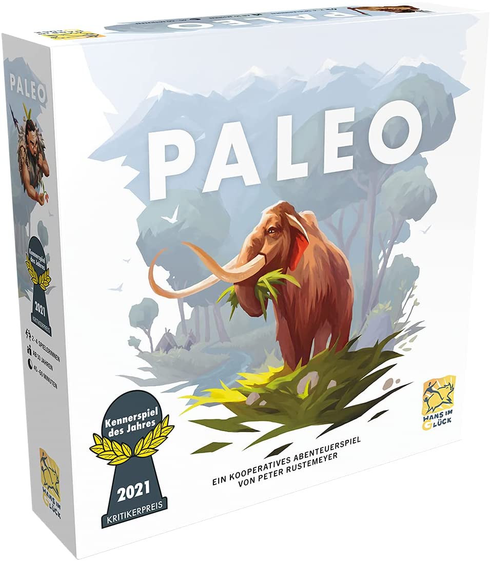 Ein neuer Tag in der Steinzeit beginnt. Euer Stamm kämpft gemeinsam ums Überleben und strebt ständig nach Fortschritt und Ideen. Es lauern aber viele Gefahren in der Wildnis: Tiere, Stürme und andere Stämme warten auf euch. Wird es euch gelingen, das Überleben eures Stammes zu sichern und gleichzeitig eine Höhlenmalerei für die Nachwelt zu hinterlassen? Erlebt in Paleo zusammen mit euren Freunden ein kooperatives Abenteuer in der Altsteinzeit und stellt euch dem Überlebenskampf. In den verschiedensten Regionen warten diverse Aufgaben, fremde Stämme und neue Tiere auf euch. Könnt ihr euch diesen Aufgaben stellen? Denn nicht alles, was ihr findet, wird euch freundlich gesinnt sein! Nur als funktionierendes Team werdet ihr die Gefahren der Steinzeit bewältigen und euer Überleben sichern können. Eine Partie ist beendet, wenn ihr zusammen gewinnt – oder verliert. Jeder von euch spielt eine Gruppe Menschen mit verschiedenen Fähigkeiten. Erkundet die Umgebung, besucht unterschiedliche Orte, sammelt Ressourcen und Nahrung und weitere nützliche Dinge. Stellt Werkzeuge her und arbeitet gemeinsam an eurer Höhlenmalerei. Am Ende des Tages müsst ihr eure Gruppe ernähren und euch den Gefahren der Nacht stellen. In Paleo warten immer wieder neue Abenteuer auf euch. Nur gemeinsam werdet ihr stark genug sein, um diese zu bestehen. **Nominiert zum Kennerspiel des Jahres 2021** Paleo überzeugt nicht nur die Spieler, sondern auch die Jury des Spiel des Jahres. Die Experten für Gesellschaftsspiele des renommierten Preises haben das Spiel daher zum Kennerspiel des Jahres 2021 nominiert. In der Begründung der Jury heißt es: „Paleo" gelingt es auf außergewöhnliche Weise, dynamische Geschichten und Bilder in den Köpfen der Gruppe entstehen zu lassen, die noch lange nach Spielende nachhallen. Im harten Kampf ums Überleben lernen wir, dass wir nur zusammen als Gruppe stark sind. Die Vielzahl an unterschiedlichen Ereignissen hält unsere Neugier über viele Partien dauerhaft aufrecht und belohnt das Erkunden dieser packenden und unnachgiebigen Steinzeitwelt. **Inhalt:** - Tableaus: 3 - Werkbank: 1 - Friedhof: 1 - Würfel: 2 - Spielkarten: 222 - Ressourcenkarten: 40 - Werkzeugplättchen: 48 - Schadensplättchen: 40 - Totenkopfplättchen: 5 - Siegpunktplättchen: 5