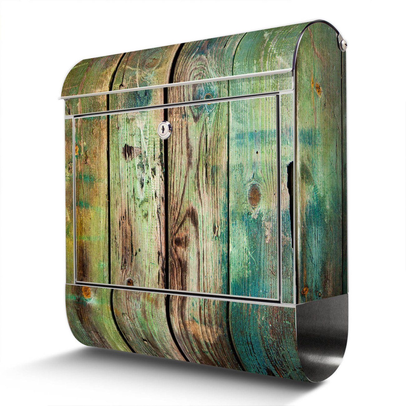 banjado Wandbriefkasten Edelstahl Grünes Holz (groß, mit Zeitungsfach) 38 x 42,5 x12cm