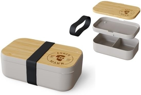 Die la vida Brotdose "Ehrenmann" ist der ideale Begleiter für unterwegs. Mit einem Fassungsvermögen von 970 ml bietet sie ausreichend Platz für Ihre Pausenbrote und Gemüsesticks. Der zweiteilige Deckel aus einem Bambusbrettchen und einem Kunststoffdeckel sorgt für eine sichere Aufbewahrung. Ein Elastikband hält alles zusammen, während das Entlüftungsventil die Nutzung in der Mikrowelle ermöglicht. Die Kunststoffteile sind spülmaschinengeeignet, was die Reinigung erleichtert. **Highlights** - Platz für viele Pausenbrote - Bambusbrettchen als Deckel - Mit Entlüftungsventil für die Mikrowelle - Praktische Trennstreifen - Elastikband für sicheren Verschluss **Produkteigenschaften** - Maße (HxBxT): 73 mm x 197 mm x 120 mm - Fassungsvermögen: 970 ml - Material Deckel: Bambus, Kunststoff, Silikon - Material Schale: Kunststoff - Kunststoffteile für die Spülmaschine geeignet