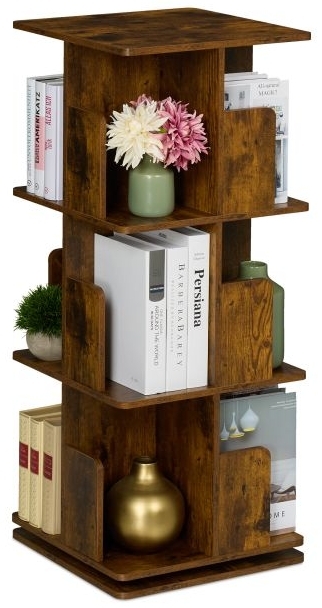 Das eckige Bücherregal bietet viel Platz zur Aufbewahrung von Büchern, C Ds, DV Ds oder Dekoartikeln. Dank der 360-Grad-Drehbarkeit hast Du ganz leicht von allen Seiten Zugriff auf den Inhalt. Die Seitenwände verhindern dabei ein Herausfallen der Gegenstände beim Drehen. Dank der kompakten Stellfläche passt der Bücherturm bestens in Ecken oder kleine Räume. Das dekorative Design im Industrial-Stil ist dabei ein Blickfang in jedem Raum.Bücherregal im Detail- Maße 3 Ebenen H x B x T: ca. 95 x 39 x 39 cm / ca. 14 kg - Je Fach H x B x T: ca. 29 x 17,5 x 19 cm- Traglast 3 Ebenen: ca. 28 kg- Traglast 4 Ebenen: ca. 34 kg- Material: Holzwerkstoff, Stahl- Farbe: Braun Eckiger Buchturm zum Drehen- Das rotierende Regal ist um 360 Grad drehbar- Ausreichend Stauraum für Bücher, C Ds, DV Ds, Deko uvm.- Seitenwände verhindern Herausfallen von Gegenständen- Mit kompakter Stellfläche für optimale Raumnutzung- Vielseitig nutzbar in Wohn-, Arbeits- oder Schlafzimmer- Holzoptik im Industrial-Design als dekorativer Blickfang Lieferumfang- 1x Buchregal in Einzelteilen- Mit Anleitung- Mit Montagematerial- Dekoartikel sind nicht im Lieferumfang enthalten (EAN: 4052025869014)