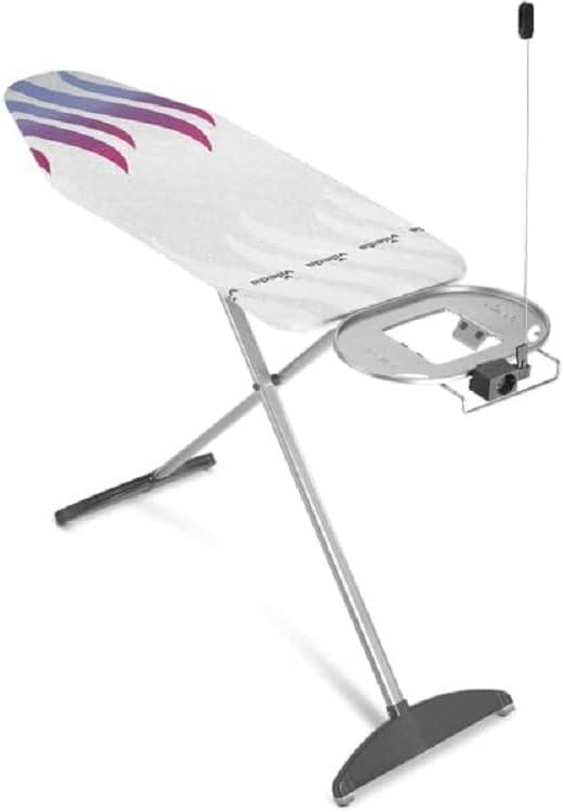 | Name | Vileda Total Reflect Plus Bügelbrett, Bügeltisch für Dampfbügelstation, extrabreite Bügelfläche 130x44 cm, höhenverstellbar 80-97cm, Farbe Grau-Lila-Blau, Eco-Verpackung |