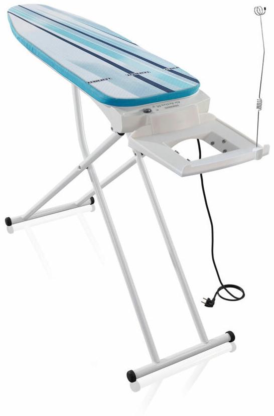 Der Leifheit Bügeltisch Air Active Express M in Weiß bietet eine effiziente Lösung für das Bügeln mit Dampfbügelstationen. Mit einer großzügigen Bügelfläche von 118 x 38 cm und einer ergonomisch abgesenkten Kombi-Ablage für Dampfstationen bis 31 x 28 cm ermöglicht er ein schnelles und faltenfreies Bügelergebnis. Die An-, Absaug- und Aufblasfunktion reduziert die Bügelzeit erheblich und sorgt für optimale Ergebnisse, selbst bei empfindlichen Stoffen. **Highlights** - Aktiv-Bügeltisch für schnelles Bügeln mit Dampf-Bügelstationen - Falten- und abdruckfreies Bügeln dank Aufblasfunktion - An- und Absaugfunktion für schnelle Faserdurchdringung - Ergonomisch abgesenkte Kombi-Ablage für Dampfstationen - Höhenverstellbar von 75 bis 100 cm für optimale Arbeitshöhe **Produkteigenschaften** - Bügelfläche: 118 x 38 cm - Kombi-Ablage: 31 x 28 cm - Material: Stahl, Kunststoff, Silikon - Bezug: 56% Baumwolle, 44% Polyurethan - Maße: Länge: 46,2 cm, Breite: 165,3 cm, Höhe: 15 cm - Farbe: Blau, Weiß - Hersteller-Artikelnummer: 76141 - VDE Steckdose inklusive Anschlusskabel und Kabelhalterung - Geringes Gewicht für einfachen Transport **Lieferumfang** - 1x Bügeltisch Air Active Express M - 1x VDE Steckdose mit Anschlusskabel und Kabelhalterung