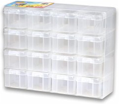 Spielwaren Das Basteln mit Steckperlen fördert die Geduld und bringt Freude beim selbstständigen Gestalten von immer wieder neuen Formen, Motiven und Farbkombinationen. Der Fantasie sind dabei keine Grenzen gesetzt. Bastelspaß für Groß und Klein. Die Perlen und das passende Zubehör sind in zahlreichen Farben und drei Größen erhältlich - Mini, Midi & Maxi. Die praktische Sortierbox (ca. 22 x 28 x 8,5 cm) bietet Stauraum in 16 Fächern auf 4 Ebenen. Sie ist zur Aufbewahrung von Bügelperlen der Größen Mini, Midi und Maxi, sowie Zubehör von Hama geeignet. Gut verstaut im und einfach zu transportieren. Der Organizer fasst alle Ihre Kleinteile, sodass nichts mehr verloren geht. Die einzelnen Schubladen können in ihrer Größe individuell und nach Wunsch verstellt werden. Hinweis: Kleinteile sind nicht enthalten. Sie erhalten einen leeren, unbestückten Sortimentskasten.