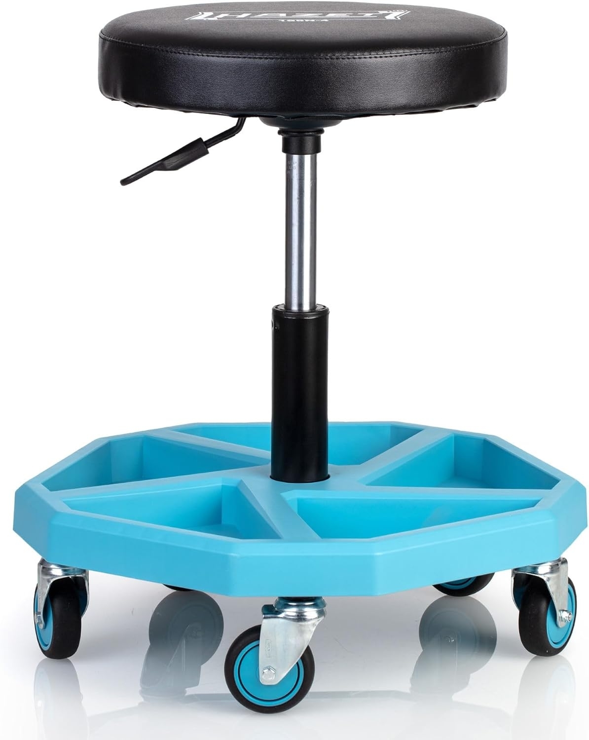 besonders stabile Konstruktion 5 geräuscharme, mehrfach gelagerte Leichtlaufrollen (Ø 75 mm) großes, extra dickes Sitzkissen Ø 350 mm leicht zu reinigen bis 150 kg dynamisch belastbar pneumatisch höhenverstellbar Werkzeugablage mit praktisch unterteilten Fächern kippsicher Verpackungseinheit: 1,00 ST