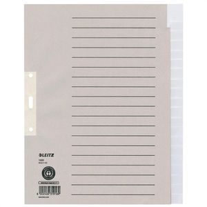 Graues Register aus Papier im Format A4 Überbreite Bei einer Überbreite von 240 mm bleiben beim Abheften von Prospekthüllen die Taben sichtbar Mit 2fach-Lochung und beschriftbarem, lochverstärktem Deckblatt Für die Sortierung von Dokumenten in Ordnern und Ringbüchern ---------------------------------------- Merkmale: Format: A4 Überbreite Material: Papier Blanko-Register: 20-teilig Farbe: grau ---------------------------------------- weitere Produktinformationen: Zertifikat: www.blauer-engel.de/uz14 Maße: 240 x 300 mm (BxH)