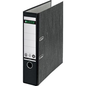 Patentierte 180°-Präzisions-Hebelmechanik mit Druckniederhalter Ordner kann um 50% weiter geöffnet werden Für schnelleres und komfortableres Arbeiten Einlegen von Papier auch auf der linken Seite möglich Rücken mit farbigem Spezialpapier verstärkt Mit geklebtem Rückenschild, metallgefasstem Griffloch und Kantenschutz Raumsparschlitze zur platzsparenden Archivierung ---------------------------------------- Merkmale: Format: A4 Ausführung: breit Farbe: schwarz Material: Karton ---------------------------------------- weitere Produktinformationen: Oberflächenmaterial (außen/innen): Papier / Papier Optik (außen/innen): Wolkenmarmor / grau Rückenbreite: 8cm Zertifikat: www.blauer-engel.de/uz14b Garantie: 5 Jahre Herstellergarantie auf die Präzisionsmechanik