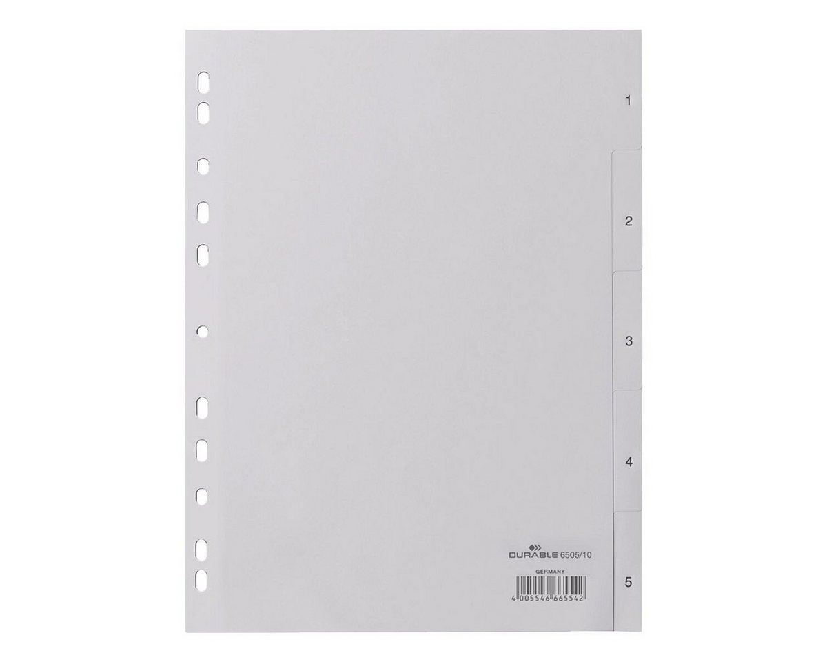 DURABLE AktenordnerRegister 1-5, DIN A4, 5-tlg., Kunststoff, grau