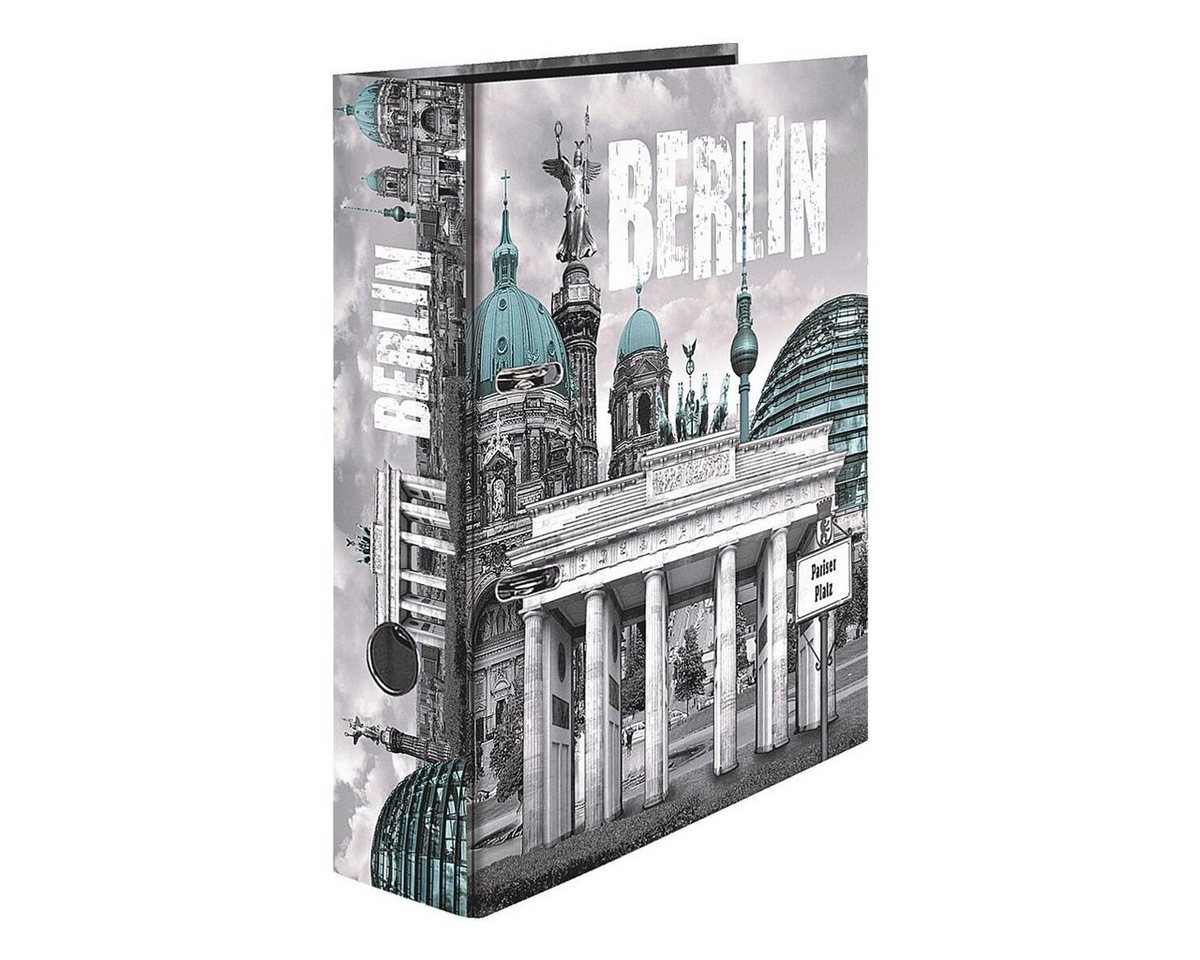 • Der HERMA Aktenordner Berlin in DIN A4 Breite ist mit einem Motiv der Wahrzeichen der Stadt Berlin bedruckt