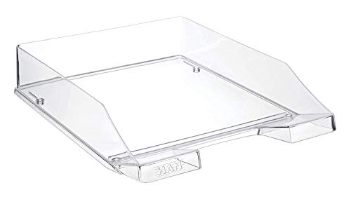 Merkmale: für Format: A4 Material: Kunststoff Farbe: glasklar Ausführung: stapelbar ---------------------------------------- weitere Produktinformationen: Innenmaße: 24,3 x 5,7 x 33,5 cm (BxHxT) Außenmaße: 25,5 x 6,5 x 34,8 cm (BxHxT) ---------------------------------------- sonstiges: senkrecht oder versetzt stapelbar, mit Greifausschnitt und Beschriftungsfeld, kompatibel mit den meisten Standard-Briefablagen