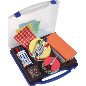 Moderationskoffer mit 1142 Teilen Aus Kunststoff mit transparentem Deckel Bietet alles, was für eine erfolgreiche Moderation benötigt wird Ideal zum Halten von Seminaren und Schulungen an wechselnden Orten ---------------------------------------- Merkmale: Material: Kunststoff ---------------------------------------- weitere Produktinformationen: Farbe: blau Kofferinhalt: 1 Schere 10 Flipchartstifte 200 Markierungsnadeln 480 Markierungspunkte 150 Moderationskarten, rechteckig 20,5 x 9,5 cm 150 Moderationskarten, rund Ø 9,5 cm 150 Moderationskarten, rund Ø 14 cm Maße: (BxHxT) 34,5 x 6 x 31 cm