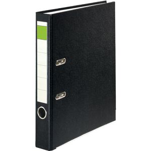 Made in Germany Sehr strapazierfähig durch Kaschierung mit griffig genarbter PP-Folie Mit austauschbarem Rückenschild, metallgefasstem Griffloch und Kantenschutz Hebelmechanik mit Druckniederhalter Raumsparschlitze zur platzsparenden Archivierung ---------------------------------------- Merkmale: Format: A4 Ausführung: schmal Farbe: schwarz Material: Kunststoff ---------------------------------------- weitere Produktinformationen: Oberflächenmaterial (außen/innen): PP / Papier Optik (außen/innen): schwarz / grau Rückenbreite: 5cm