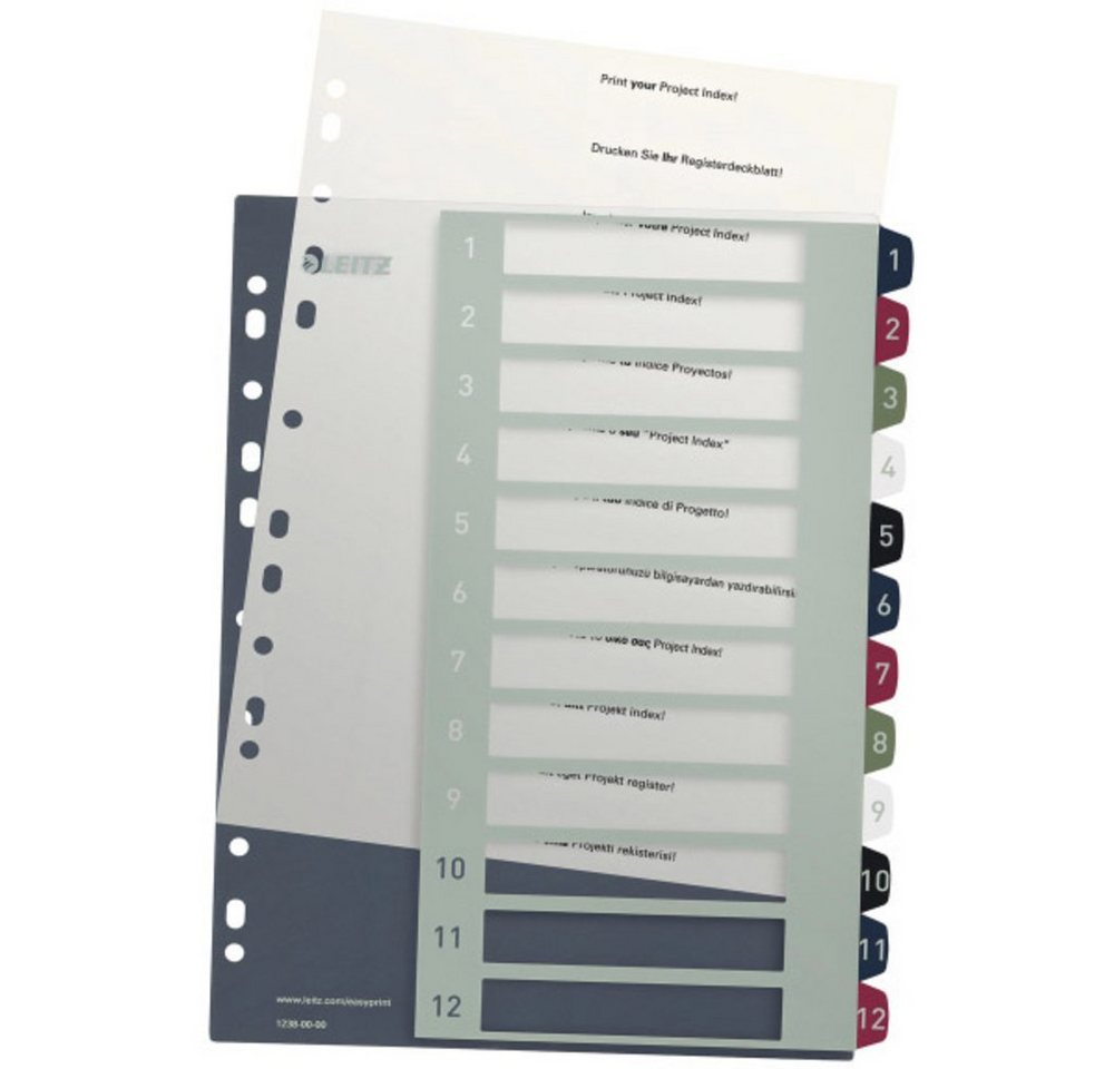 LEITZ Aktenordner Leitz 1238 Style Register DIN A4 1-12 Polypropylen Mehrfarbig 12 Regis - Wiederverwendbarextra langlebig, elegante Farbkombination