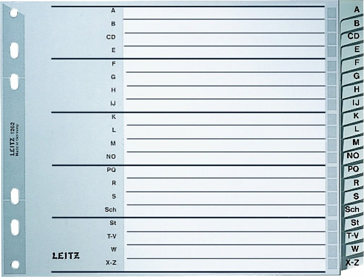 LEITZ AktenordnerPlastikregister A-Z, A4, Überbreite, halbe Höhe, grau