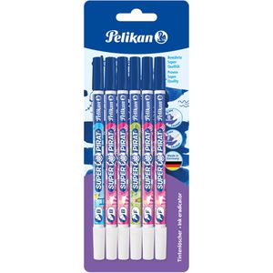 6 Tintenkiller in je 3x Strichstärke F und B Mit zwei Spitzen - löschen und korrigieren Löscht blaue Tinte und überschreibt Tintenfarbe Für feine Korrekturen und zum Löschen einzelner Buchstaben Made in Germany ---------------------------------------- Merkmale: Strichstärke: B, F Mengeneinheit: Set ---------------------------------------- weitere Produktinformationen: Produktserie: Pelikan Super Pirat geeignet für: blaue Tinte