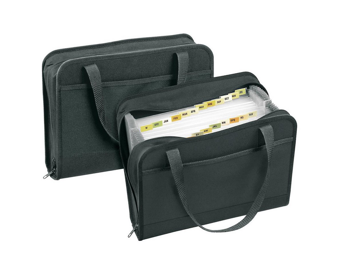 VELOFLEX Aktenordner Veloflex Fächertasche Office 4446880DIN A4, 24 Fächer, Textil, schwarz mit Tragegriff