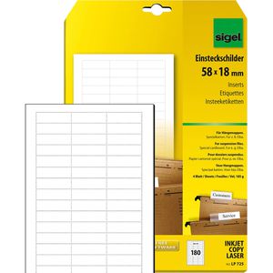 Merkmale: geeignet für: Hängeregister, Hängemappen Größe: 58 x 18 mm Farbe: weiß ---------------------------------------- weitere Produktinformationen: Stück pro Pack: 180 Stück Made in Germany ---------------------------------------- sonstiges: kann mit Drucker beschriftet werden, geeignet für alle passenden Vollsichtreiter