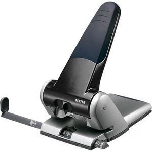 Registraturlocher für bis zu 65 Blatt Anschlagschiene einstellbar auf DIN A4, A5, A6, Folio und US-Quart 4-fach Lochung (8x8x8cm Lochabstand) Robust dank Vollmetall-Bauweise aus Aluminiumdruckguss Powersave Technologie für müheloses Lochen großer Papiermengen Rutschfester Überzug am Griff gewährleistet guten Halt Griff-Verriegelung zum platzsparenden Verstauen Aufklappbarer Abfallkasten zur einfachen Entleerung ---------------------------------------- Merkmale: Ausführung: Blocklocher, Registraturlocher Stanzleistung: 65 Blatt Farbe: schwarz ---------------------------------------- weitere Produktinformationen: Lochabstand: 80 mm Material Unterteil: Metall mit rutschfestem möbelschonendem Kunststoffboden Material Griff: Metall mit rutschfestem Kunststoffüberzug Garantie: 10 Jahre Herstellergarantie