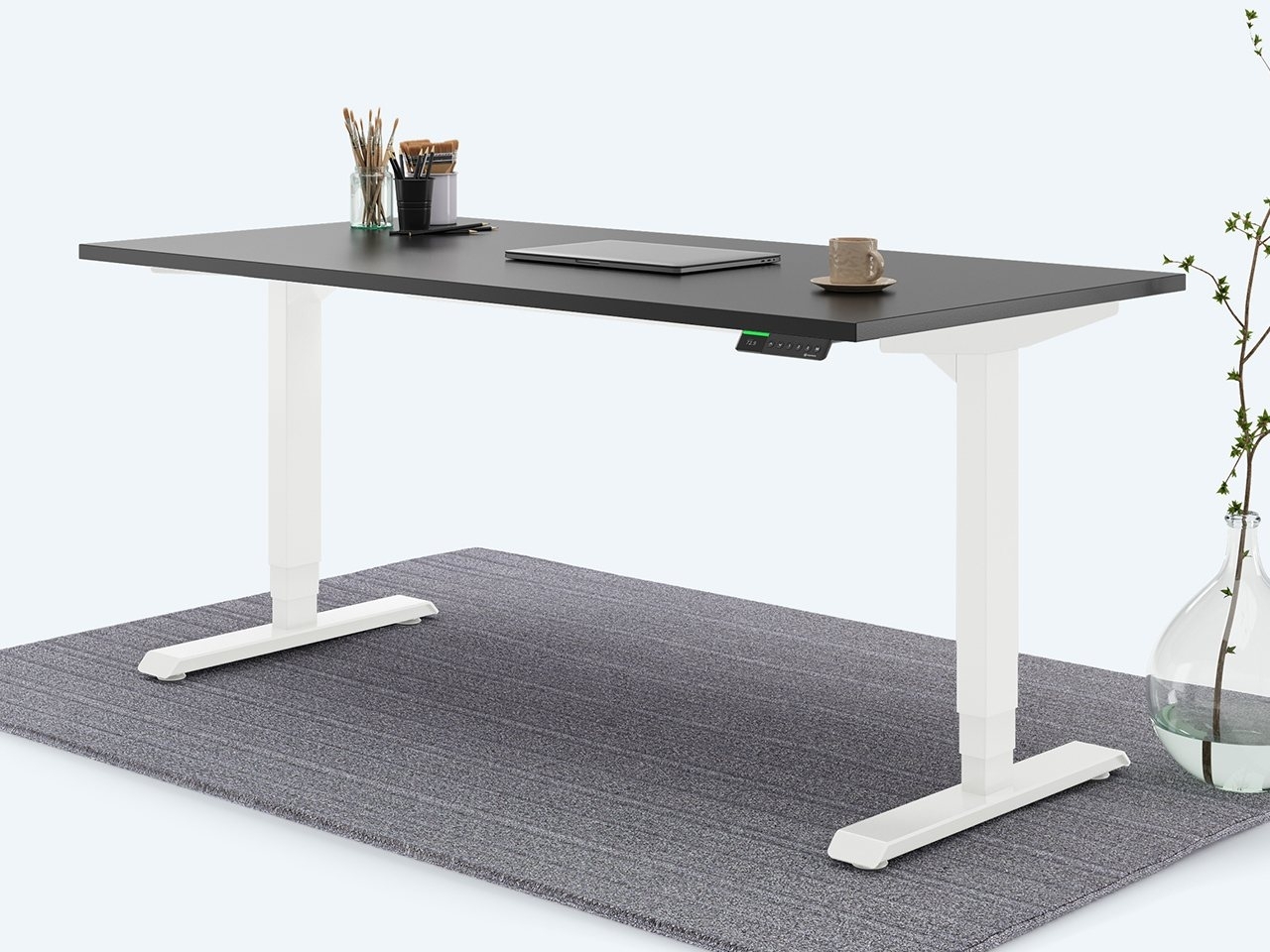 **Elektrisch höhenverstellbarer Schreibtisch - Desktopia Pro X** Der Desktopia Pro X ist ein ergonomischer Schreibtisch mit elektrischer Höhenverstellung und Memory-Funktion. Mit 7 Jahren Garantie bietet er Leistung und Gesundheit auf Knopfdruck. Erhältlich in verschiedenen Farben und Größen, mit einem verstellbaren Einheitsgestell für Tischplatten von 120-200 cm Breite. Die Arbeitshöhe kann von 62,3 cm bis 127 cm eingestellt werden. Der Schreibtisch verfügt über einen Elektroantrieb mit 2 zuverlässigen Motoren, die eine Bewegungsgeschwindigkeit von 38 mm pro Sekunde ermöglichen. Die dynamische Nutzlast beträgt 80 kg, die statische Nutzlast 100 kg. Das Gestell ist in Grau, Schwarz oder Weiß erhältlich. **Highlights** - Sehr hochwertige Technik - Edles LED-Display mit exakter Höhenanzeige und Memoryfunktion - Starke und zuverlässige Motoren mit Kollisionsschutz - Empfohlen von Physiotherapeuten, Professoren und Rückenexperten - Erinnerungsfunktion und Stehzeit-Tracking **Produkteigenschaften** - Farben: Grau, Ahorn, Buche, Weiß, Schwarz, Nussbaum, Bambus, Eiche - Maße: 120x80 cm, 160x80 cm, 180x80 cm (B x T) - Arbeitshöhe: 62,3-127 cm - Antrieb: Elektroantrieb mit 2 Motoren - Bewegungsgeschwindigkeit: 38 mm/s - Dynamische Nutzlast: 80 kg - Statische Nutzlast: 100 kg - Gestellfarben: Grau (RAL 7045), Schwarz (RAL 9005), Weiß (RAL 9016)