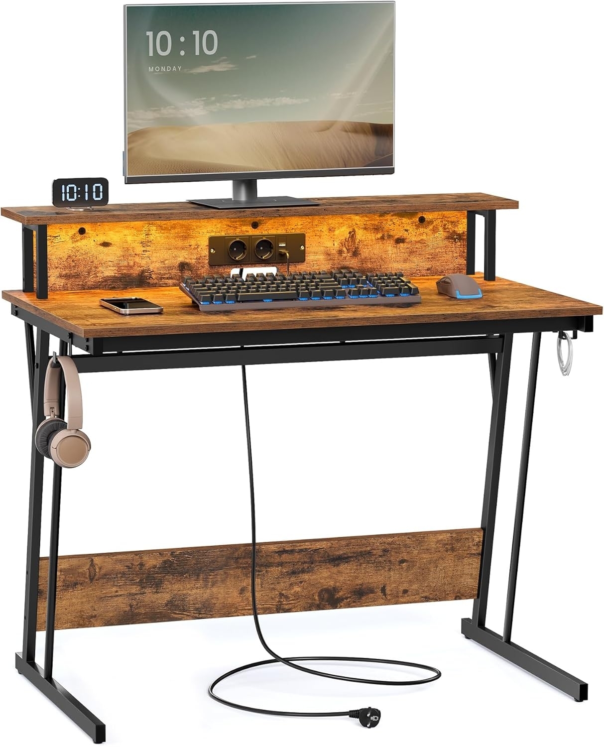 | Name | Vasagle Schreibtisch, Gaming Tisch mit eingebauter Steckdosenleiste, Computertisch, mit Monitorständer für 2 Monitore, Schlafzimmer, 60 x 100 x 76 cm, vintagebraun LWDDE191K01 |