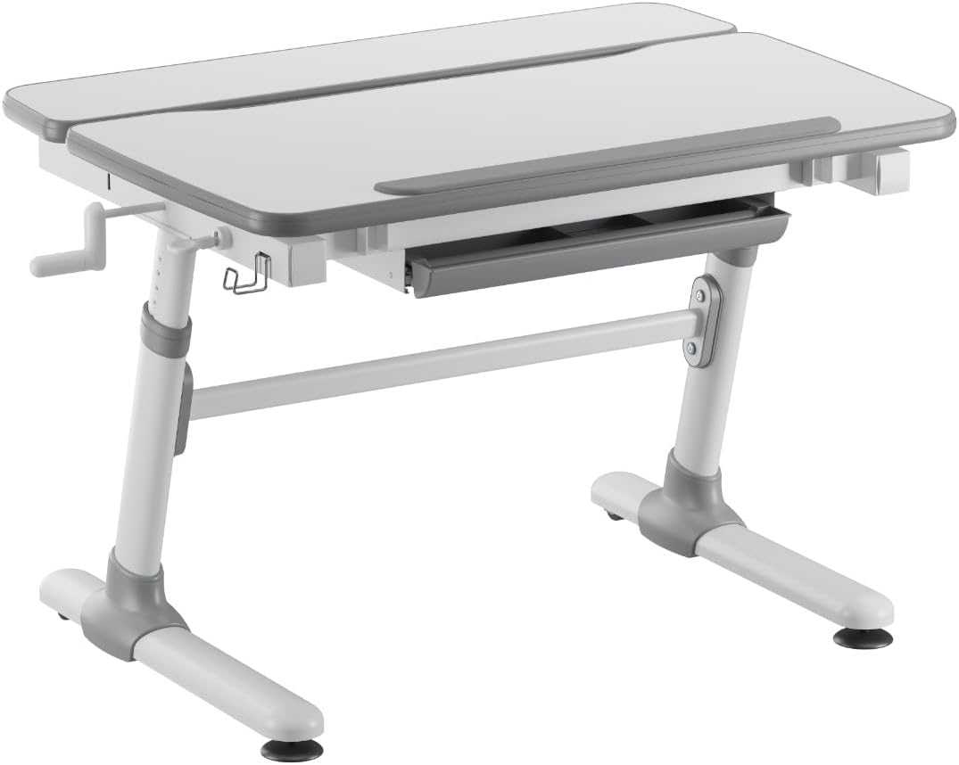 | Name | HOKO Kinderschreibtisch höhenverstellbar 58-80 cm, 98x70 cm, neigbare Tischplatte (0-25) (Schublade, ergonomischer Lernplatz für Kinder ab 6 Jahren, stabil & sicher, belastbar bis 100 kg (Weiß/Grau) |