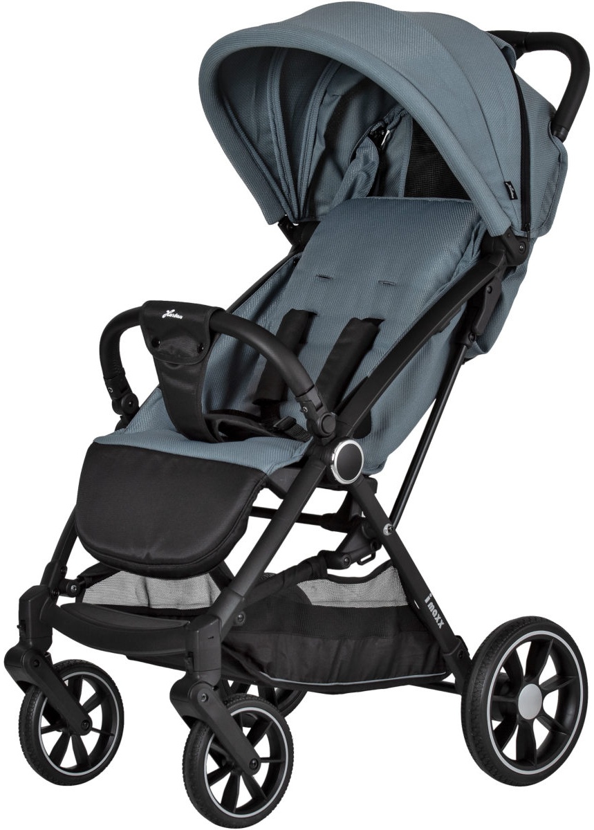Hartan Buggy i-maxx Der Hartan Buggy i-maxx ist ein perfekter Begleiter für den Alltag. Dank seines kompakten Faltmaß von 58 cm lässt sich der Buggy bequem in jeden Kofferraum verstauen. Ob auf Reisen, im eigenen Zuhause oder im stressigen Alltag mit Bus und Bahn - dieser Buggy punktet mit seiner leichten Handhabung. Die extra großen PU-Räder mit Federung sorgen dafür das Sie jedes Gelände meistern. Die Vorderräder des Buggy sind schwenkbar und je nach Bedarf können die hochwertigen Räder auch fixiert werden. Da die Sicherheit bei Hartan an erster Stelle steht ist der Buggy i-maxx mit einem 5-Punkte-Sicherheitsgurt ausgestattet, der das Kind sicher im Sitz festhält ohne dabei störend zu wirken. Eine Polsterung sorgt für einen angenehmen Komfort, damit das Kind nicht schon nach kurzer Zeit Reißaus nehmen will, sondern sich während der Fahrt entspannt zurücklehnen kann. Der Gurt kann selbstverständlich nur von den Eltern geöffnet werden, da ein gezielter Handgriff notwendig ist. So kann das Kind problemlos mit Blick in Fahrtrichtung kutschiert werden, ohne dass Sie sich Sorgen machen müssen. Dank der Feststellbremse ist der Kinderwagen zudem vor einem ungewollten Wegrollen geschützt. Der Klappmechanismus ist leicht zu bedienen, so dass nur wenige Handgriffe für das Zusammen- und Auseinanderklappen notwendig sind. Damit Ihr Kind die bequeme Fahrt auch genießen kann lässt sich die Sitzposition verstellen, sogar bis in der Ruheposition falls der kleine Fahrgast mal ein Schläfchen halten muss. Sollte die Sonne Ihrem Baby ins Gesicht scheinen können Sie das Verdeck, welches mit einen Sonnenschutz 50+ ausgestattet ist, einfach ausklappen. Produkthighlights: • Ausklappbares Verdeck mit Sonnenschutz 50+ • Stufenlos verstellbare Sitzposition, inklusive Ruheposition • Verstellbare Fußstütze • 5-Punkte-Sicherheitsgurt • Feststellbremse • Griffebzug in Lederoptik • Transportsicherung • Hochwertige PU-Räder • Schwenkbare Vorderräder, inklusive Federung Technische Daten: • Gewicht: 8,4 kg • Abmessungen: L 82 x B 58 x H 104 cm • Klappmaß: L 66 x B 58 x 29 cm
